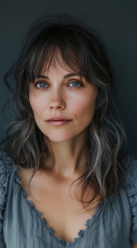 - Layers and bangs help soften facial features after 40