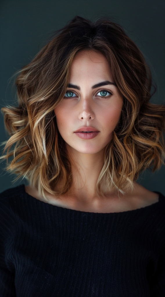 25. Wavy Textured Medium-Length Bob with Highlights for Depth