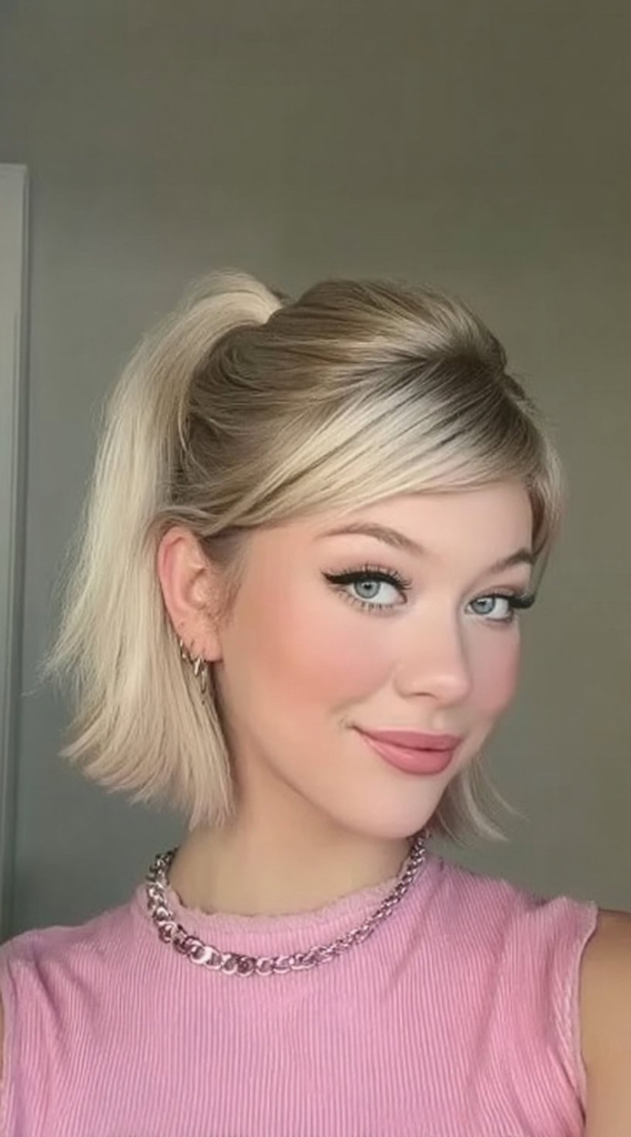 11. Short Barbie Flip Ponytail With Side Bangs