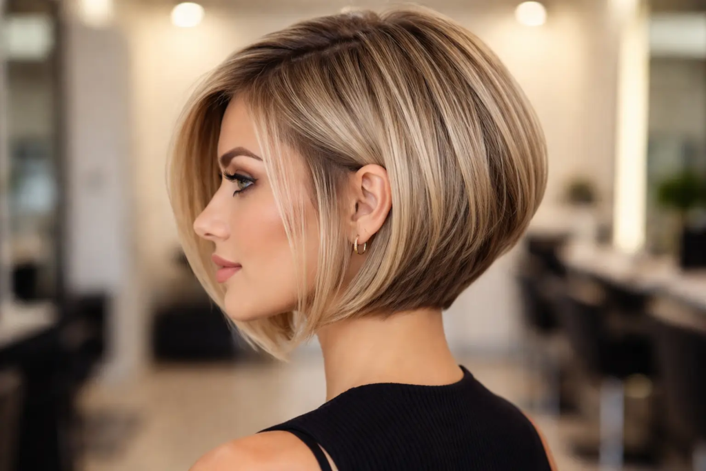 The inverted bob adds stacked layers at the back for extra height. It’s a stronger version of the angled bob and works well for noticeable volume.