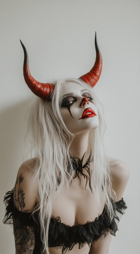 This combination works because it balances extremes—the femininity of waves with the edginess of horns. It’s theatrical without being over-the-top. The trick to maintaining platinum blonde during Halloween season is using purple-toning shampoo every 2-3 washes to prevent brassiness from indoor lighting and makeup.