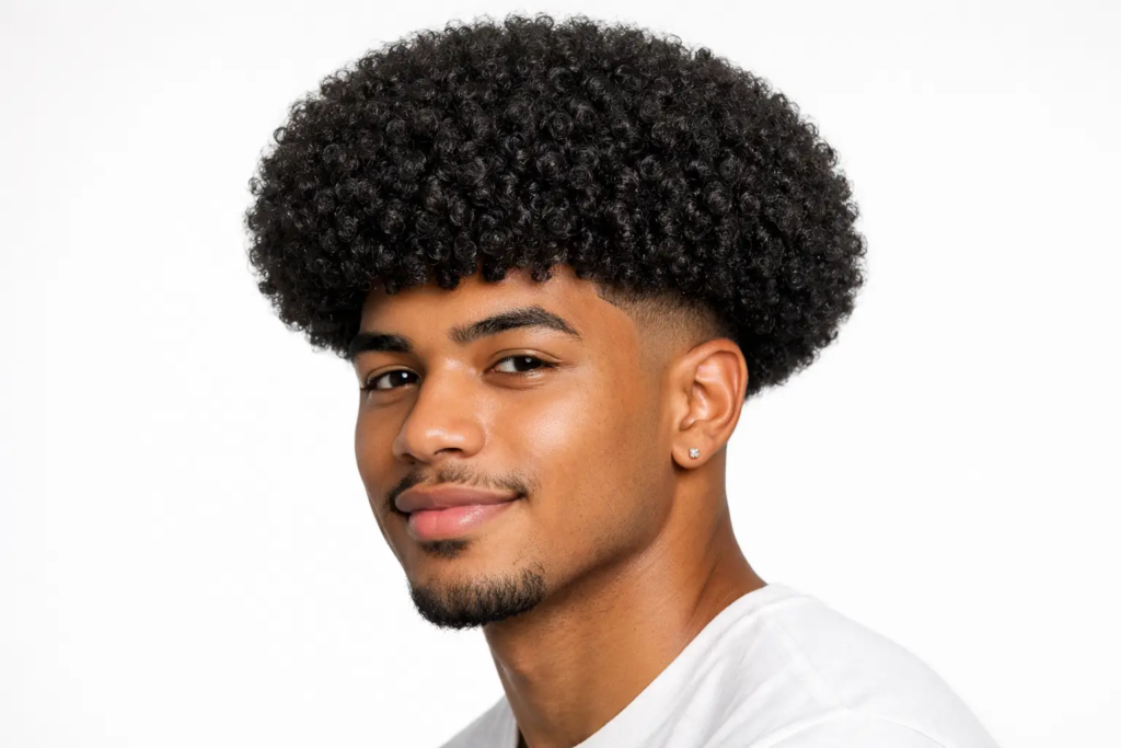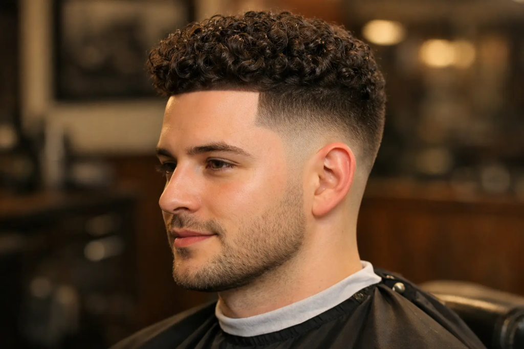 The taper fade with curly top works best for most men because it suits all curl types and face shapes while staying easy to manage.