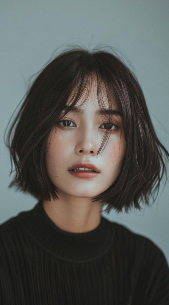 I use this style when I want something casual and soft. The bangs add texture while keeping the look light. A texturizing spray helps maintain the shape.