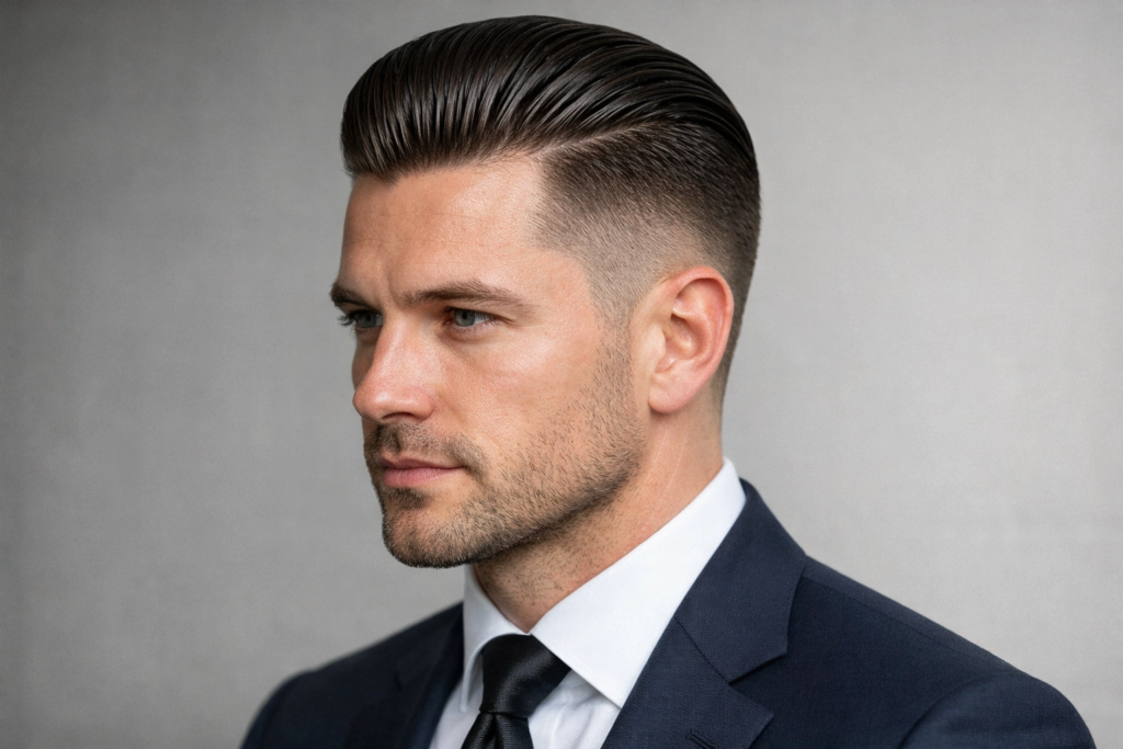 This style gives a clean and polished finish by combing hair back. It is ideal for formal settings or business environments.
