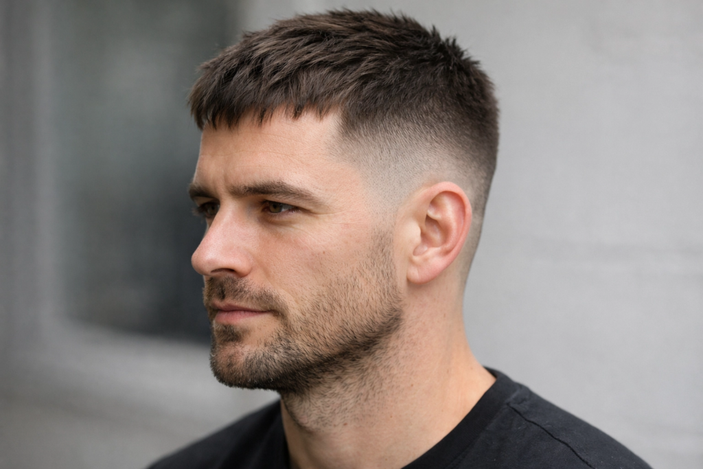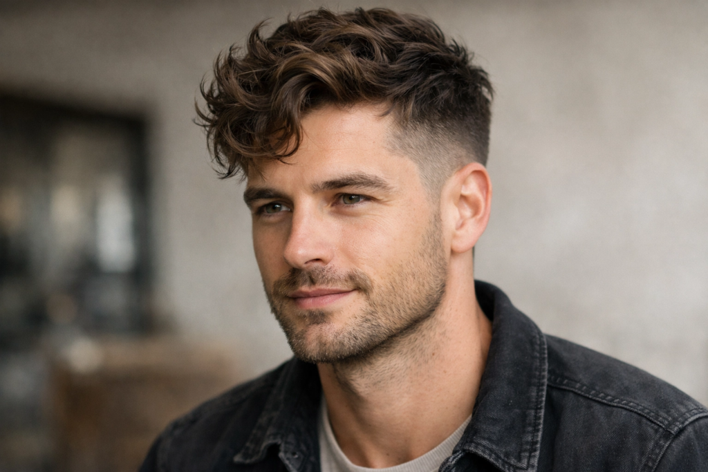 This is a balanced haircut with a medium-length top and clean faded sides. It works well for daily wear and doesn’t go out of style. From what I’ve seen, this is the safest option for beginners.