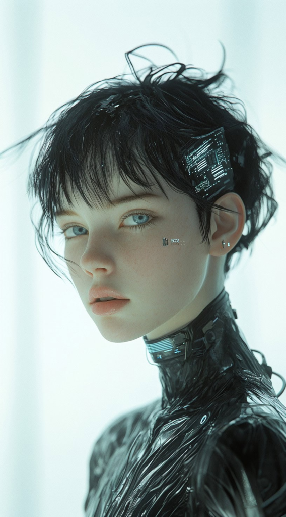 Short-haired women often feel limited with Halloween styling this look completely flips that idea. A tousled pixie with wispy bangs reads instantly as futuristic and rebellious, especially when paired with chrome or metallic accessories. Studies show textured short cuts have seen a 34% increase in search interest around October, making this a genuinely trending style.