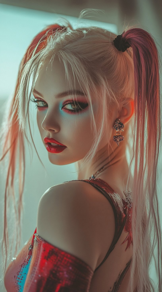 9. Harley Quinn Platinum Blonde with Dyed Pigtails
