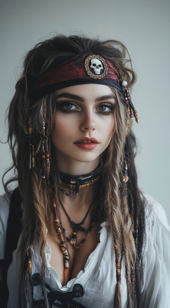 14. Pirate Captain Headband with Loose Braids and Beads
