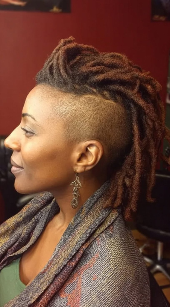 22. High Mohawk Locs with Shaved Sides
