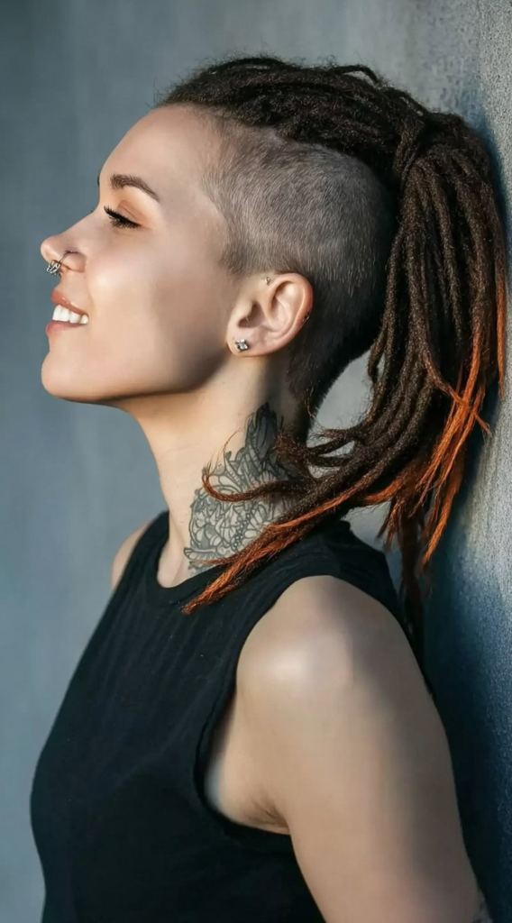 36. Copper-Tipped Loc Ponytail with Full Side Shave