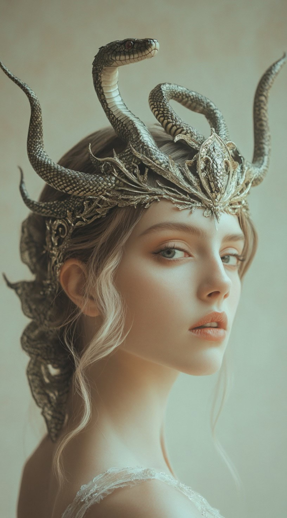 1. Ornate Snake Crown with Flowing Locks