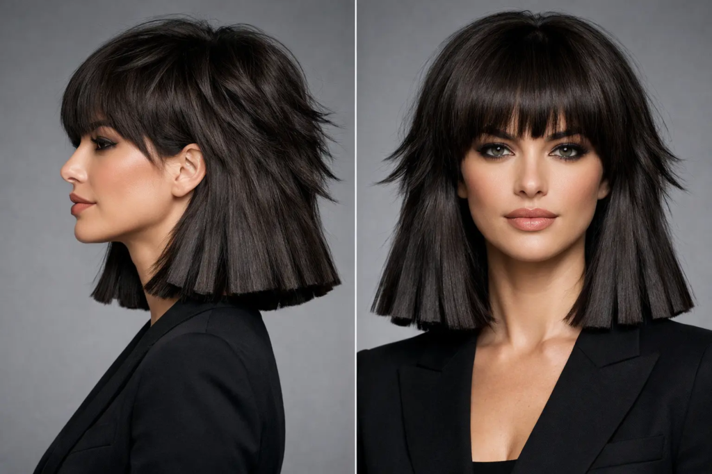 The bangs blend into the layers, making the haircut feel more complete. This works especially well for oval and heart-shaped faces.
