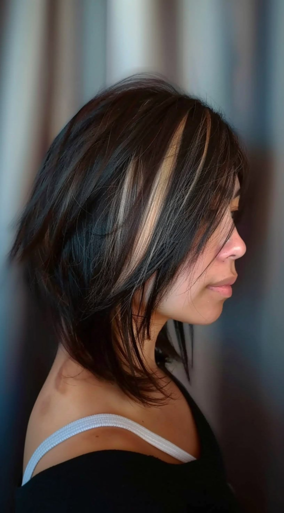 7. Layered Bob with Blonde Highlights