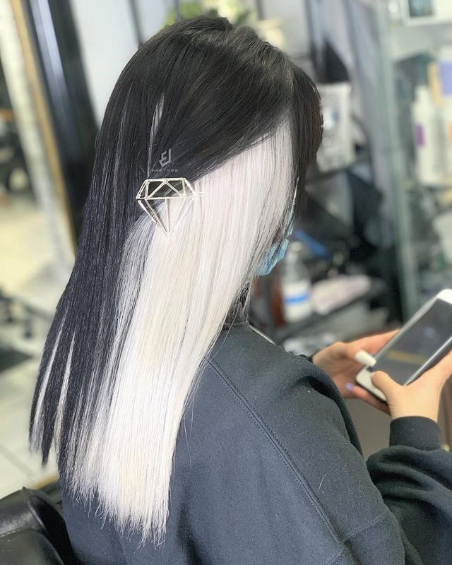 This style adds light blonde tones under dark hair for a soft contrast. I’ve noticed it works well for beginners who want a safe change.