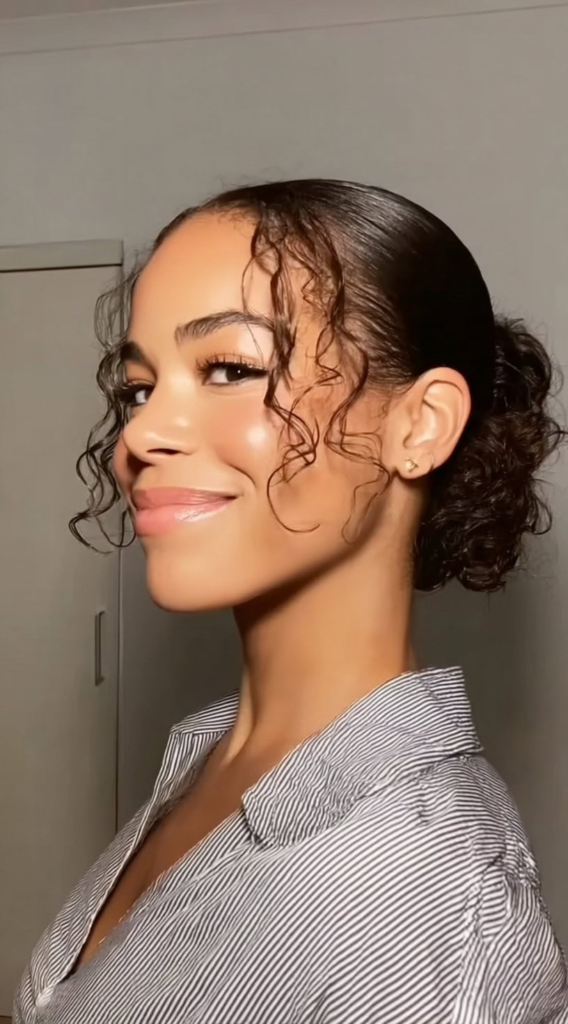 I like this style when I want a clean and secure look. It keeps my curls in place and works well for busy days.