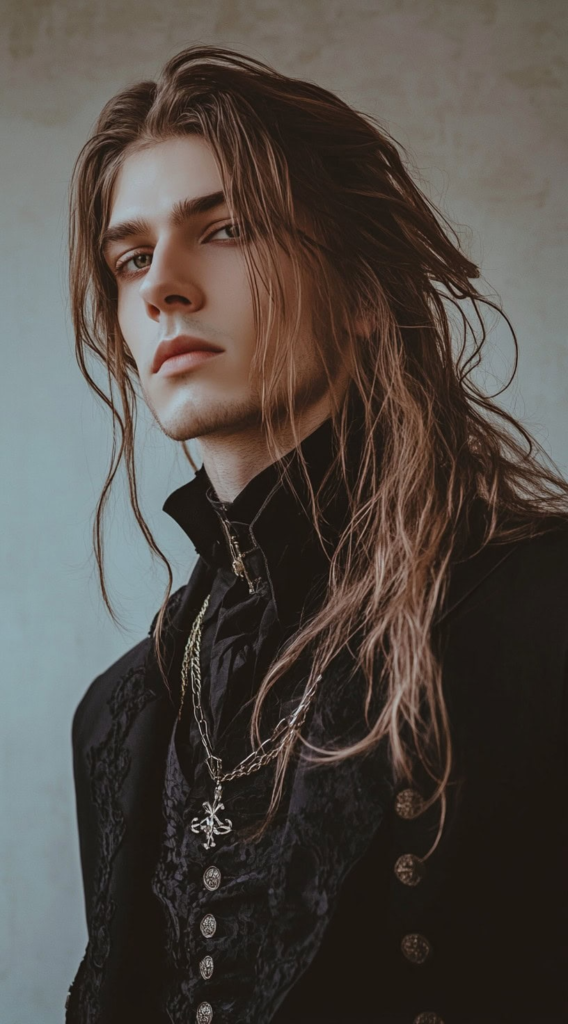 Long, flowing hair — whether straight or with a natural wave — is perhaps the most timeless vampire look for men. It requires virtually no active styling, which makes it one of the most accessible options on this list. The hair simply needs to be in good condition to carry the aesthetic convincingly.