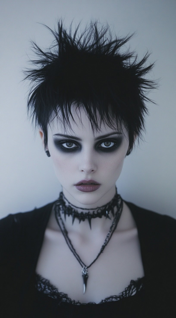 Insight: Dark hair enhances gothic aesthetics.